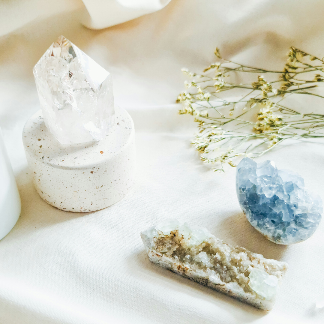 Each candle or spray has a specific crystal at the base that is infused during the pour process designed to align the intention with the healing properties of the corresponding crystal. It infuses the wax and allows the energy of the crystal to flow up and in a circular motion with each light. Sprays are activated by shaking before use.